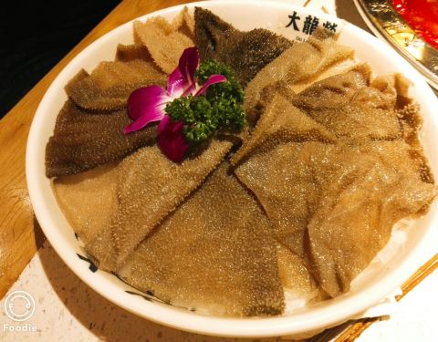 2020年第一顿火锅,当然要选在大龙一啦!对他家的奔驰过,可是向往已久呢。 [薄荷]环境: 进门就看到了金龙飞舞的招牌,大厅也布置得颇有几分江湖气息,尤其是这面贴满机票的打卡墙,多少人回家第一件事就是来他家来一顿啦 |奔驰锅^虽然有个高大上的名字,但是还是更加喜欢叫他三分天下,牛蛙、红油再加上菌菇,不同的风味,搭配出不同的组合。 川味火锅,自然少不了黄喉牛百叶大刀牛肚了,每样的时间都需要严格的把控,哦,这样才更加美味的。 不过这次重点推荐他家的|签上掌中宝^。直接串在竹签上,放在锅里颇有点小时候炸小串的感觉。 他家的锅子就是劲大无比,当然这个时候就要配上一碗地道的四川冰粉了,十分的解辣,哦,而且和大夏天也十分的相配呢。