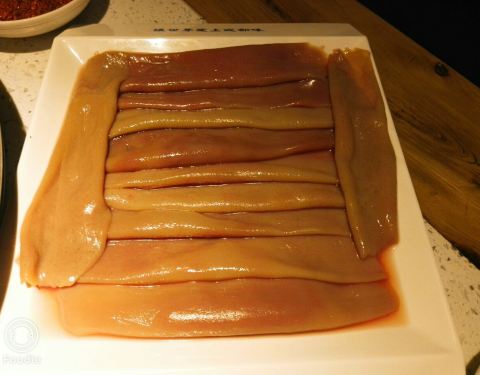 贡菜也是很少店能吃到,脆脆的,好吃。 吃火锅不能少的是牛肚和牛肉,我的最爱。委屈,只能化悲伤为食欲喽