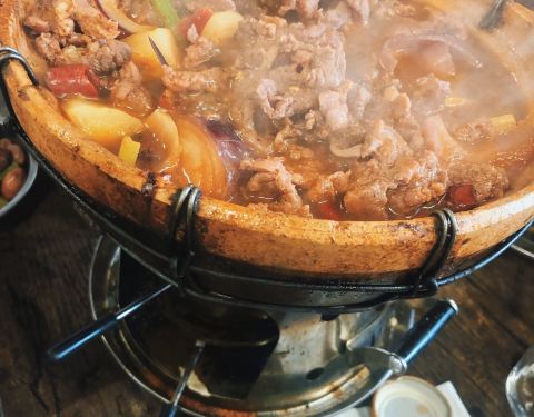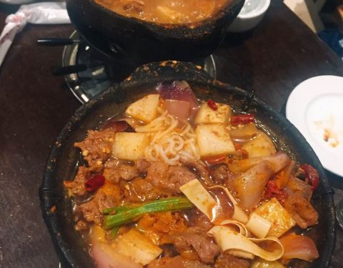 朋友推荐的 超好吃的鸡公煲 我们点了一份儿牛蛙煲 一份儿鸡公煲 虽然是中辣 却吃的满头大汗 真爽 菜品自助可以像火锅一样可以涮着吃 真的蛮不错 人均五十左右很实惠
