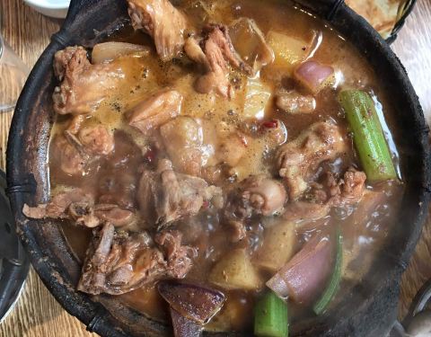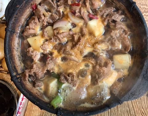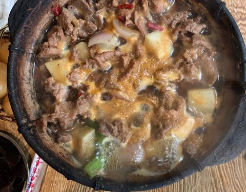 来了好几次了这次终于想起来写点评哈哈!大热天吃鸡公煲也是真爱了,小店环境很嘈杂很乱,桌子地面也很油,但是生意超好,6、7点阿里基本上都要等位了。因为不吃兔子和牛蛙,也不爱吃鸡,所以就点了牛肉煲和排骨...
