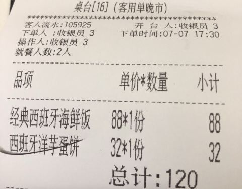 人均在一百五左右,主食点的是经典西班牙海鲜饭。门面不是很大,餐厅整体呈狭长型,可容纳的桌数还是很多的