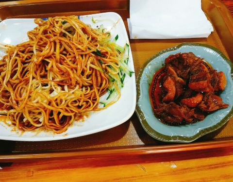 中午吃饭的好去处。 真的很像大食堂里,先点完菜,然后结账。 一切也显得干净方便。 现在也推出了冷面系列,面略干,酱油是类似拌面的酱油,红红的。面的量挺大,清冷面是6元。 口水鸡还不错,现切拌料。味道很适中,不会太辣。 啤酒鸭不是太好吃,味道很一般,就酱油味。 菜还是很多,现在办卡还有8折。