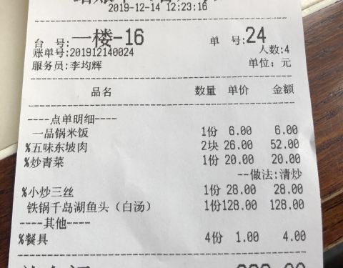 没有菜单,看着菜现点,有点不习惯,不过每个菜都好吃,量也大,就餐环境有品味,开到晚上十二点,猪手,烧鲈鱼,鲜黄花菜,真是鱼米之乡,下次再试试其他菜。