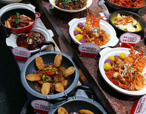 饭店大致位置杭州东站,具体位于东站西子国际大厦一层,店铺面积挺大,上下二层。开放式看菜点菜,想吃啥点啥。东坡肉,要求服务员挑瘦点的,味道OK,酥软,甜度适中。千岛湖鱼头,菜品种繁多,蟹、虾、大鱼头、牛蛙、菌类,年糕,丰富吧,菜品质量不错,做的也好,就是吃后口干。青菜极其好吃。