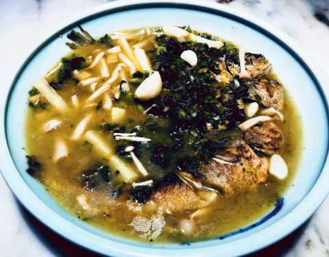...(食材)雪菜、冬笋、茭白、菌菇 (特色)用正宗宁波雪菜加菌菇烧制,黄鱼不腥,肉质鲜嫩,味道很赞