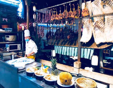 这家孙五味就在我们住的智选假日酒店楼下,白天经过的时候不怎么引人注目,晚上非常热闹,可以看样点菜,鱼汤很鲜甜,鱼肉嫩滑,小龙虾个头比较大,糖醋排骨也不错。