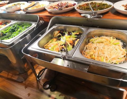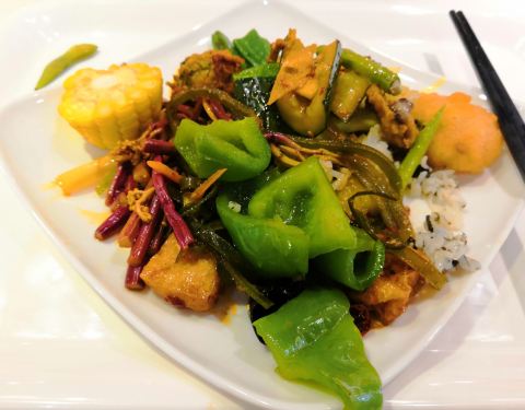 同事跟我说在摩尔莲花二楼这里有一家自助的素菜馆,上个月的中午下了班就过来了,因为都没来过事先问了问有住在附近的同事,虽然没来过这但还挺好找的。 中午来这里用餐的人挺多的,餐厅关键干净整洁,以单人位居多,吃饭的时候还能听到舒缓愉悦的佛乐。 别看都是素菜,菜品种类多,不仅有炒的,蒸的,油炸的,还有凉拌菜,各种主食,还有水果,小食等等。味道还行。