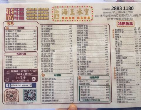 从永利皇宫坐缆车上方就有轻轨站,免费环岛一周,非常方便,我们是临时发现决定去老城区吃饭的,结果很惊喜的找到了【海王冰室】,坐轻轨到什么体育馆下,跟着导航走5分钟就到了。🤯很有特色的港式茶餐厅🍴,...