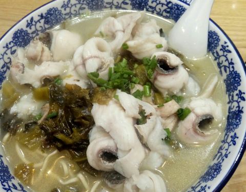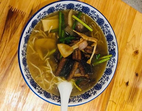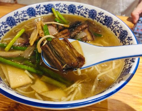 爆鳝面,真的香,鳝段与洋葱的烹调,入味,一块一块的很匀称,肉厚刺少,叠堆在上。下次要早点去吃想吃的