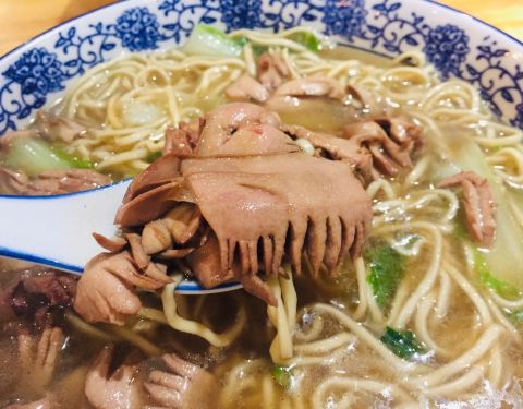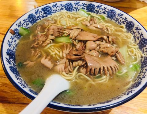 好棒呀,荣鲜面馆~ 环境素雅,晚上去的,有些面都没有啦。下次要早点去吃想吃的。 爆鳝面,真的香,鳝段与洋葱的烹调,入味,一块一块的很匀称,肉厚刺少,叠堆在上。 腰花面,腰花爽快处理,加以蔬菜,汤汁感会轻薄一些,个人感觉爆鳝面更胜一筹。[呲牙](纯属个人口味) 总之吃的很开心~