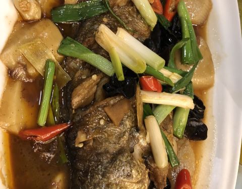 桂花藕是我最爱的,带有一点点桂花香味,温式黄鱼烧年糕,黄鱼年糕吃起来的口感有点甜甜的,年糕糯糯...