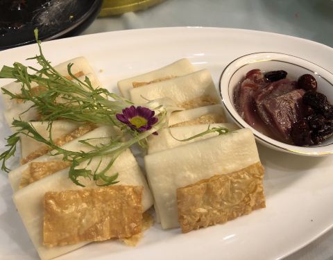 龙井清泉小牛肉:很嫩很软很透,稍微一用力肉就散了,伴随着茶香一起吃进去,舌尖一卷就化在嘴里了,回神过来是一番滋味。 九宫格:我估摸着应该是女孩子应该都会抵挡不住,吃的少还每个都想尝一场,点这个没错了。用了酥,卷,炸,蒸等烹调方式。