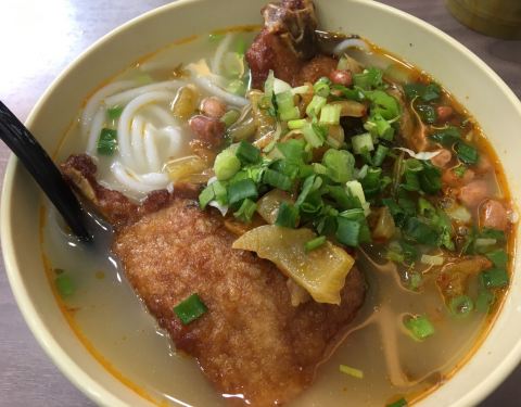 阿一猪扒米线在西营盘就开了两家店,这家店环境整洁、服务也很好。点了份最招牌的“阿一猪扒酸辣米线”,套餐还加送一份小菜,拍黄瓜或是凉拌木耳或酥炸云吞,总共只需46蚊。味道相当不错,而且份量有够大,比单点划算。