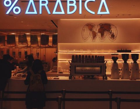 % Arabica在香港的分店越开越多了,最近还看到甚至开到了环境乱糟糟但是相当网红的怪兽大厦里面。IFC楼里的这一家应该是% Arabica在香港最早的店,就在中环3号码头通向IFC的天桥入口处。店小小的,只能打包带走,没有座位。若要环境和风景更好的,可以去坚尼地城、鸭巴甸街、以及星光大道的K11门口的那几家分店。