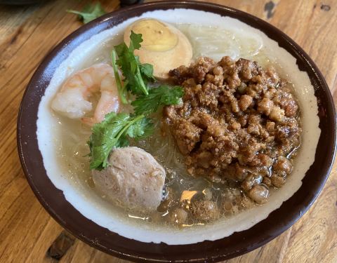 阿元来了是台湾特色小吃店,与香港很常见的茶木台湾餐厅不同,茶木比较正餐化,而阿元来了则是以台湾街头小吃为主,比如蚵仔煎、盐酥鸡、大肠面线还有卤肉饭。不过点了一份蒜泥白肉却有一些不太理想,是有一点像肥牛那样的长长的肥瘦相间的薄片,但是很明显调味汁不够,根本就和不匀,所以好些吃在嘴里真的就只是白肉的味道。但那一碗肉燥米粉还是不错的,地道。
