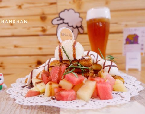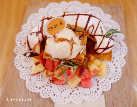 那么热的天 如果有杯冰冻的红茶 加上甜甜的点心 想必心情也会SHINING起来 暖和光就是这样一家 充满夏天味道的店 【大体环境】 店里布置的很温馨 暖黄的灯光、贴满照片的墙壁 给人一种暖暖的感觉 符合店主温暖如夏的灿烂气质 各类手办衍生品 透露着店主对原创的坚持 每一样都想带回家 仿佛回到童真年代 【餐点介绍】 ✨红茶玛奇朵 红茶选用精品茶味 搭配金骏眉茶叶 精心泡制 红茶的甘甜 奶盖的浓郁 恰到其份的融合 第一口的红色云彩 回味甜中有甘 茶中有奶的香甜 奶中混合着茶的韵味 是款很值得推荐的饮品 ✨富士山下 甜点都是现烤现做 从下单到上桌需要等上几分钟 超高颜值的一款甜品 夏季限定款 经过现烤后 面包外酥内软 淋上巧克力酱、奶油、玛奇朵奶盖 再搭配冰淇淋、水果等 简直是少女杀手 甜味恰到好处 吃起来也不会很腻 而且用料十足 一口下去口感层次丰富 吃一上口 就对爱情和生活多一份理解 【总体评价】 店主用心做的小卡片 生动精致有趣 适合朋友小聚聊天发呆 喜欢这样有情怀、有温度的小店 希望一直开下去 【人均消费】 25元左右