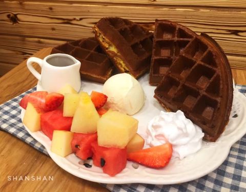 暖和光 NIKKOU CAFE 生活不仅仅有暖和光,更需要有这样一份美好的下午茶。暖和光就是这样一家让人觉得很温暖的小店,淡黄色的色调让人觉得很舒服,很温馨,小店整体的设计也不会让人觉得很局促。 店主滨滨拥有超棒的咖啡和甜点技艺,更有设计天赋,在店里能够看到他原创设计的包包和衣服,还蛮时尚的,是年轻人会喜欢的风格。店里还有很多小玩意,小公仔,小玩偶,瞬间少女心就被激发了,想要全部带回家。一楼适合闺蜜好友相聚,二楼适合玩狼人杀,多人相聚。 #松饼#松饼的话就做得蛮脆的,咬起来嘎嘣脆,吃之前记得要倒酱料上去,这样口感会更甜,不知道为什么吃完这个总有一种恋爱的感觉,觉得很甜。 #草莓奶香冰沙#一开始时候看着红色的冰沙,总以为是草莓冰沙,喝下去之后才发现是西瓜冰沙,很甜很解渴,上面还有草莓切片,口感甜甜的,不发涩,还有一层层淡淡的奶油包裹着。 #水果茶#一次性可以吃到多种水果,绿茶做底,味道很清新,很解腻,最满足的就是喝完水果茶之后,能把剩下的水果一口吃掉。 #蓝藻冰沙#这是一款颜值味道都很在线的甜品,是我很喜欢的静谧蓝,颜色刚刚好,蓝白相间,下面的蓝色冰沙很细软,没有冰渣子。 #奶盖白桃#对奶盖系列总是无理由的偏爱,白桃上的奶盖不甜也不咸,味道刚刚好,底下的白桃茶,喝出了回甘,很清爽。 #百香果慕斯#印象中的百香果都是偏酸甜的,店家提取了百香果的清香,加入到慕斯蛋糕中,浓浓的百香果味,蛋糕很柔软。 #提拉米苏#喜欢吃上面那层巧克力沫,店家还打上了nikkou cafe的字样,很有趣,不过下面的底层蛋糕再多点会更加完美。 #西柚苏打#天气热的时候,喜欢喝带有西柚的饮品,因为水分多并且甜度很高,夏天它都是首选,看着苏打水往上冒泡泡,好开心,冰冰凉的感觉。 一个温暖的午后,希望在暖和光,遇见一 个更好的自己。 ps:生活需要点设计,生活需要点温暖和阳光。