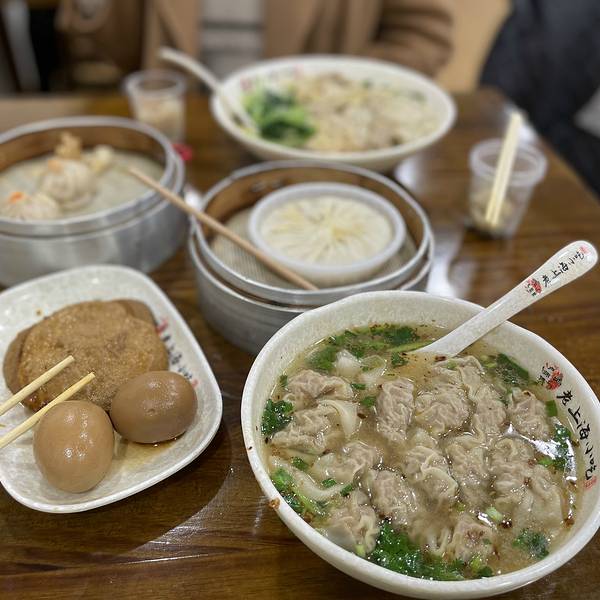 5月初去上海的时候,恰有半天时间,因住在步行街附近,感觉步行街同其他地方的商业街没啥大区别,就往上海本地人住的小巷子那边逛去。天空中还下着蒙蒙细雨,就像找个地方去吃早饭。 溜达中就碰到了此家上海小吃店。早已听闻上海的小笼包都是甜味的,肉馅亦是如此。虽然早已习惯北方的咸味,但入乡随俗嘛,也就点了店里的招牌:南翔鲜肉小笼和虾肉小馄饨。 小笼包是在是有些太甜了,没能吃完。倒是小馄饨,汤色清透、口味醇厚,一个里面一个虾仁,吃的很是过瘾。服务人员感觉不是特别热情,不知是不是一贯特色。