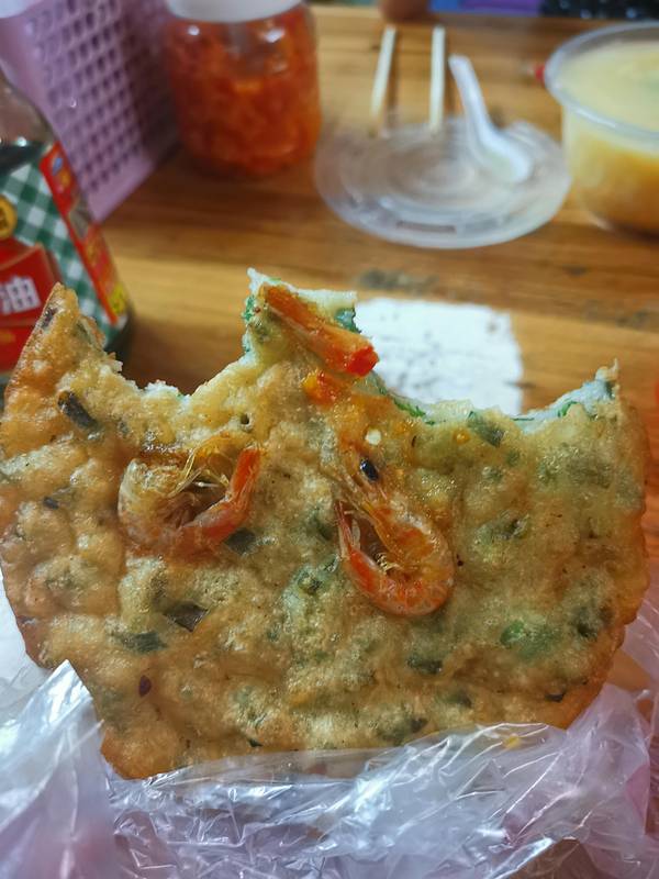 看着时间差不多了,回到停车场换了衣服。去千古情之前打算先吃口东西,突然想到海南特色小吃鸡屎藤,打算尝试一下,正好离亚龙湾海边不远的群众街就有一家非常有名的店,开车前往。因为就打算垫补一口所以点了一份鸡屎藤和一个虾饼,鸡屎藤看着有点怪怪的,但是味道还是蛮好吃的,吃起来感觉很清爽,口味甜甜的,虾饼也好吃,吃完后便出发千古情。
