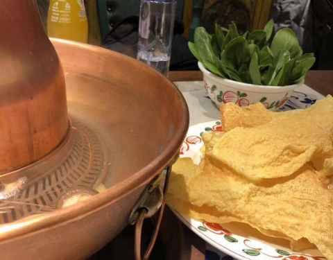 和朋友跨年夜去吃的晚饭,四点多到的所以不排队,6点吃完出门已经排队了,还挺冷的,店内空间小,一部分人在店外排队。老北京铜锅羊肉,要了羊腿肉,有点肥,经典调料的味道真不错,麻将韭菜花蒜泥。酸梅汤竟然是盒装的哈哈哈哈。