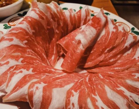 推荐现切的羊上脑,肥瘦相间,也比较嫩。店很大,里面还有一间。其他的都是大块,容易煮老