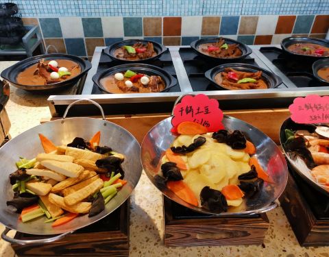 旅游赠送的海鲜火锅券,所以特地来消费的,大食代就在岛沁公园旁边,里面的菜除了海鲜,还有很多别的家常菜。我们去的比较早,海鲜火锅上桌的速度还蛮快的。火锅除了鱼,虾,蛤蜊等海鲜,还有青菜,生菜,粉丝,金针菇,年糕等素菜,年糕和粉丝不够可以添加。这里有个男服务员不错,会主动提醒我们海鲜最好煮的熟一点,吃完海鲜,最好别喝冷水和水果,否则容易引起脾胃失调。感觉还是蛮贴心的。