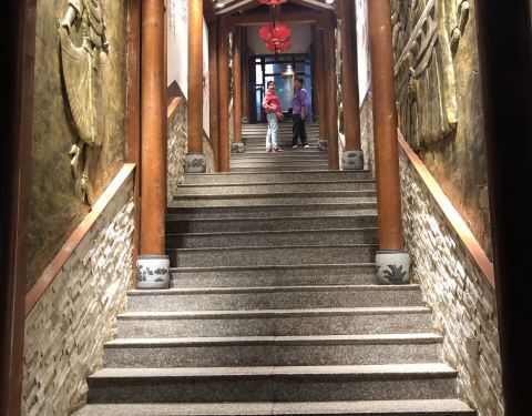 一家充满贵州民族风情的餐厅,以酸汤鱼为著名的餐厅。 进餐期间有贵州民族特色的演出,互动环节将演出推向高潮。 当天点了酸汤鱼,鱼是黄刺辣(即黄骨鱼),鲜甜肉嫩。米饭和配上的蔬菜(菠菜、大白菜、生菜)无限量供应。 做为游客,选择此餐厅是最佳的选择。