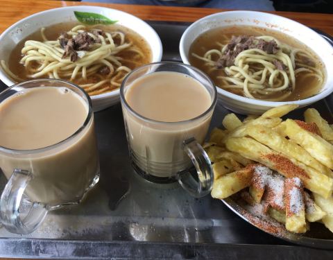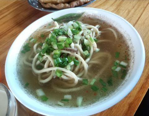 藏面的口感还不是很适应,不过汤是真的好喝,纯纯的牛肉清汤。早餐,跟着朋友来到拉萨鲁布藏面馆解决