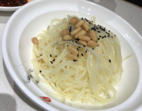 也许个人口感?加了松仁和黑芝麻的凉拌土豆丝,青口之外倒是没特别味道;反正我对这个喜欢不起来
