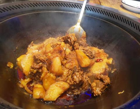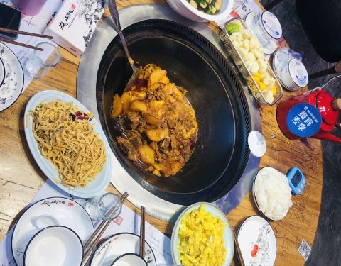 在本地好像是一家挺有名气的一家店,本地人和游客都会去,铁锅炖菜是必吃的,店内生意很不错,门口停满了车。店内装修的还算不错,以雪乡为背景装修的,位置摆放的都比较闲散,坐起来挺舒服,不拥挤。 点了铁锅炖之后,桌上能放的菜就是绕着大锅子放了,桌面显得有点局促。土豆炖的非常软糯,光吃菜的话会比较咸,搭配花卷正好,黄色的最好吃。炒鸡蛋味道和上海的鸡蛋也不一样,金光的色泽看着就非常有胃口。铁锅炖量很大,胃口小的其他菜可以烧点一些。 进出门的时候店员都会非常热情的招呼,服务态度好评。