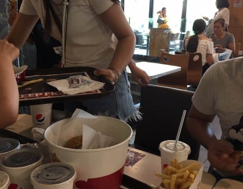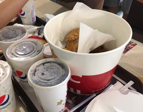 - 服务员也很亲切,我们连续点了四次,全家桶都点了两次,吃的好饱,一群吃货洗劫肯德基,为了50元现金红包