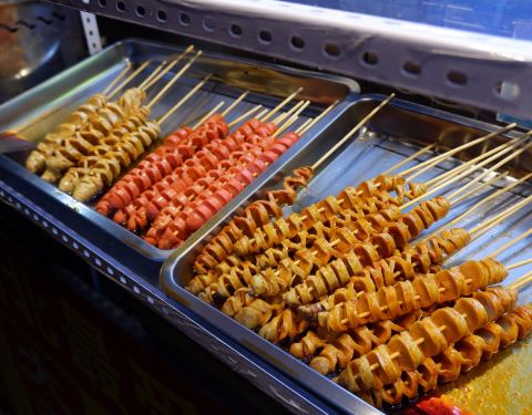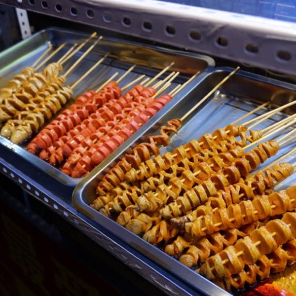 ...还有香肠啊,10元2串什么的,反正个人是比较推荐肉质感十足的香肠,那才好吃,其他的串串哪里都有
