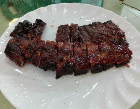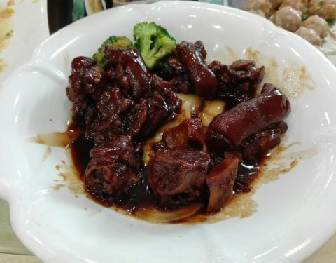 周六和一众亲戚来这里开饭,店面装修不错,灯火辉煌,主打传统粤菜,价格中规中矩,有些特价菜还是蛮划算的,但一桌限点两个,“中山南乳琵琶乳鸽”16.8元一只,我们两桌人只能点四只,乳鸽感觉做的一般,不够光亮不够油,吃起来有点木;此外还点了几个菜,“霸王葱油淋海鲩”46元,新鲜肉嫩,值得推荐;“窝蛋肉碎浸桑叶”30元,美味可口,最受欢迎;“蒜蓉粉丝蒸娃娃菜”26元,摆盘美观,也是不错;“招牌烧鲜肋排”78元,烧得太焦,影响口感;其它几个菜做得不过不失。总体感觉这里还可以吧,如果能推出一些团购套餐就更好了。