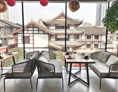 逛完大慈寺,已经是中午了,附近想找家店吃点点心垫垫饥,抬头就看见了它家的招牌,就远了他家。 进店后,选了靠窗边的位置,算得上是景观位。 它家标榜是创意川菜,菜单上的菜品不是很多,看上去摆盘都很漂亮精...