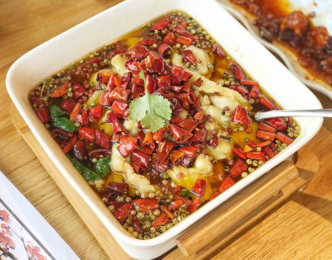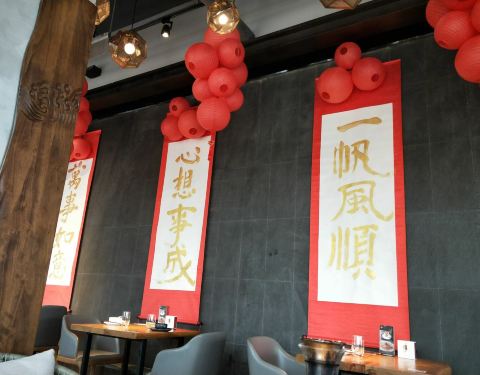 总评: 餐厅位置没话说,太古里最中心的位置,还带环绕式的二楼景观位。 内部环境装修也很用心,典雅的微复古,偏中式。 缺点也很突出,服务跟不上,上菜顺序混乱,菜品好看但味道平平。 我怀疑他们店把全部心思都用在摆盘上了,而忽视了其他重点。 价格不算高,为了环境和景观,值得去试试看。 评分:70分 性价比:❤❤❤ 【糖醋小排】78元。 还没吃我就似乎闻到了白醋的味道,是幻觉吗?反正我不喜欢用白醋做的糖醋排骨。 排骨切得确实有点小,炸得也比较干,所以感觉肉少还特紧实,口感并不好。 【养生琥珀】38元 很漂亮的一到创意菜,摆盘也比较别致。 金黄的咸蛋黄、嫩黄的玉米粒、翠绿的小豌豆、红色的枸杞、粉色的火腿粒 ….. 全都醸进蛋壳里面,切开之后,剖面特别好看,跟一个五彩琉璃一般绚烂。 【红灯照】28元一位 招牌推荐菜,名字挺喜气,其实就是一块红烧肉。 准确来说是让绝大部分女孩子都看到会害怕的肥肉,那肥得很纯粹基本上不含一丝瘦肉,说好的优质五花肉呢?我看到的是一块大肥腩。 【西蜀沸腾鱼】88元 用的应该是龙利鱼吧,裹了薄薄一层粉浆,肉很嫩滑,没有刺,口感还不错。 只是这个沸腾鱼的味道,总觉得少了点呛香的麻辣,味道也不太入味。 垫底的银牙口感清脆,但是除了油,没有别的味道了。 【烧椒荷包蛋】38元 第一次吃这道菜,挺新奇的。荷包蛋也能有这样的搭配,一直以为它只会出现在早餐里。 味道还蛮好的,主要是烧椒二荆条发挥了很大的功效。 微微一点糊,带着焦香,辣味完全被逼出来了,很开胃下饭。 【多椒贡鱼】28元一位 就是一块清蒸的鱼肉上面放了店红色的剁椒而已。鱼是鱼,剁椒是剁椒,毫无融合感。 差评! 【粉蒸排骨】48元 蒸肉粉裹得太厚了,排骨都快被忽略了呀!垫底的南瓜基本上完全被浸泡在油水里。 【憨豆熊猫】32元4只 挺可爱的4只小熊猫,紧紧巴巴的簇拥在小篮筐里,拍照也是萌萌哒。 只可惜,它也是只适合拍照和看看,因为面皮厚且不软绵,奶黄馅儿比较干。 【毛笔酥】12元一支。 第一次吃这个是在喻家厨房,宽三的毛笔酥只能说是形似,但是口感和味道都不及。 毛笔头的酥脆程度不够,太过实心,且无味。虽有蘸碟配着,一样很鸡肋。 他们家上菜的顺序特乱,凉菜中间上,小吃前前后后不断穿插,有的菜三催似催都不上。 收空盘也很不积极。