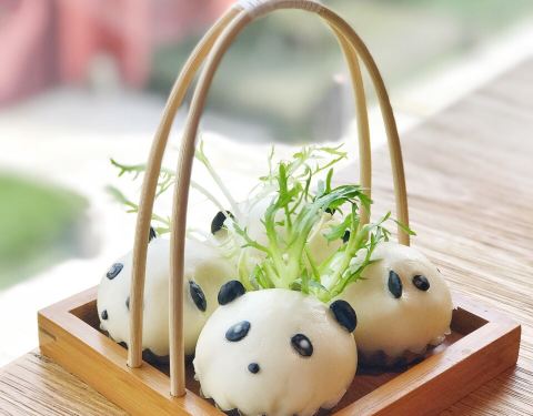 逛完大慈寺,已经是中午了,附近想找家店吃点点心垫垫饥,抬头就看见了它家的招牌,就远了他家。 进店后,选了靠窗边的位置,算得上是景观位。 它家标榜是创意川菜,菜单上的菜品不是很多,看上去摆盘都很漂亮精致。点了最受欢迎的天府熊猫和鸡汁锅贴。据介绍天府熊猫是会流沙的包子,实际就是很普通的奶黄包,鸡汁锅贴摆盘也没得说,但是没有包汤,淡而无味。