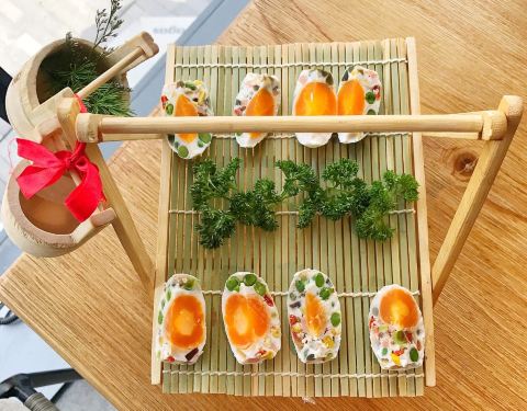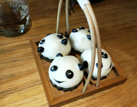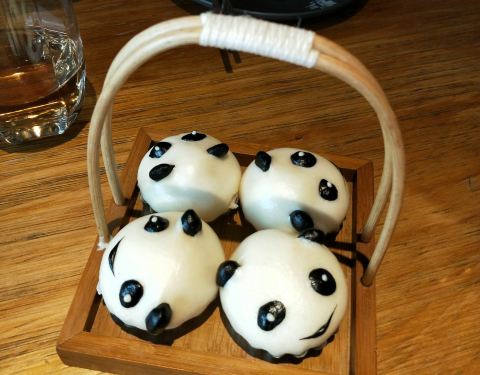 它家标榜是创意川菜,菜单上的菜品不是很多,看上去摆盘都很漂亮精致。点了最受欢迎的天府熊猫和鸡汁锅贴