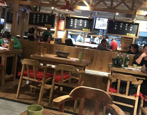 酒店离机场比较近便,周边没有什么东西,天冷又不愿意打车出去,就搜到这家饭店。酒店马路对面,在几个饭店里面门头最大最亮,人气也很旺。近店后,一楼居然满员了,来到二楼入座,一个小伙子上水时候郑重和我们声明,本店不好吃可以退。菜单品种还是很多的,带着外国友人,也不好点羊蛋啥的,一个是怕他们不习惯,第二是不会翻译啊!首先值得赞扬的是西红柿疙瘩汤,受到在坐的一致好评,可能太冷了大家都对这个暖胃的感兴趣。个种小串虽然没有什么太突出的地方,也算中规中矩了,玉米粒是甜的。后面追加的烤扇贝和茄子什么的都还行,喝的雪花脸谱,味道不错。表扬一下二楼的服务员小伙子,干活利索,随叫随到。那个大姨干啥都是一脸不愿意的样子,刚开始上酒后,因为没有开酒器,让她帮忙开酒,结果人家直接丢过来一个开酒器。我们自己开真的无所谓,你这样丢来丢去的干啥?店家营业到下半夜,应该找些年轻的来干活,大姨虽然便宜,这个脾气真是让人反感。