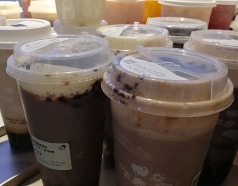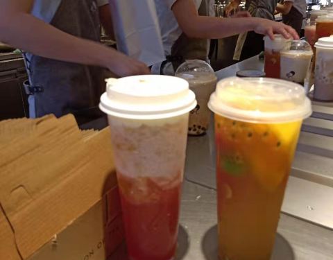 在这边还是蛮不错的,而且出了迷你的包装,所以的话用一杯的价格就可以喝到两个口味,外面还是挺多人...