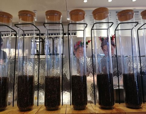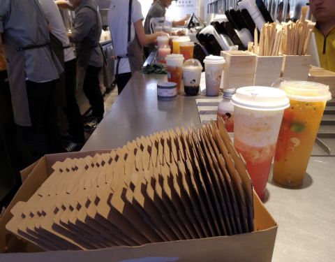 喜茶的新店铺,在这边还是蛮不错的,而且出了迷你的包装,所以的话用一杯的价格就可以喝到两个口味,外面还是挺多人的,但是这里坐的位置不多。
