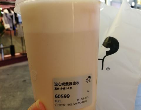 趁着周末银联优惠,经过喜茶就来买杯饮。百信广场的分店在东区,这里的手机信号好差,链接喜茶的免费wifi链接认证了也是不行,店铺也不大,坐的位置不多。要了一杯热流心奶黄波波,等了半小时,奶黄的咸味加少少的甜味刚好,一定要叫少糖,如果正常的就会很甜了。
