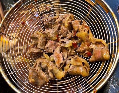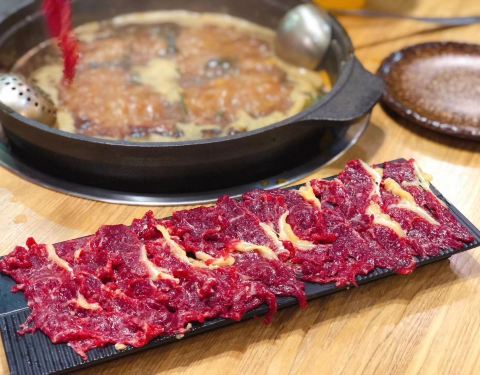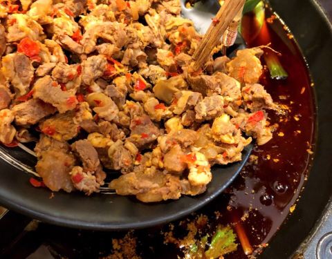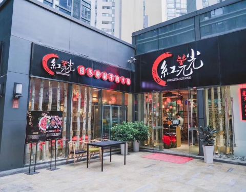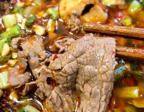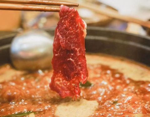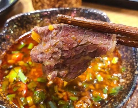 红光光 祖传秘制牛肉火锅,这真的是个容易断错句的名字,但是味道真的不容错过!手切鲜牛肉很新鲜,几秒钟的事就可以吃了,有点麻辣味潮汕牛肉火锅的感觉,原汤碟安逸得板。划重点,烧烤很乐山,很好吃,据说是成都烧烤最好吃的火锅店之一。