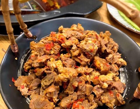 红光光 祖传秘制牛肉火锅,这真的是个容易断错句的名字,但是味道真的不容错过!手切鲜牛肉很新鲜,几秒钟的事就可以吃了,有点麻辣味潮汕牛肉火锅的感觉,原汤碟安逸得板。划重点,烧烤很乐山,很好吃,据说是成...
