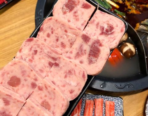 上次来买吐司都没有发现这家,看来是新开的,双人套餐这分量简直足得我嫌肉多。 【鸳鸯锅】48,本来想点红锅,但是店员突然介绍说他家的白锅是猪骨熬出来的骨汤,所以立马决定要鸳鸯锅了。其实感觉锅底的清油味比较重,和一般的牛油火锅不一样。 菜品也很有特色【招牌秘制牛喜喜】68,小坨坨的牛肉+牛筋,有点像码过豆瓣儿的。煮进红锅软糯又入味儿,而且真的好多好多,吃了好多锅里都还有好多。 【手切鲜牛肉】38,像潮汕牛肉的那种牛肉,烫个10秒的样子就很鲜嫩了。红锅白锅都很适合。 【秘制火腿午餐肉】24,肉肉含量很高呢,好吃。 【北海道蟹柳】28,不能煮太久不然会散,吃起还有点回甜。 烧烤类有【五花肉】【掌中宝】【珺肝】【鸡皮】味道都挺好的,特别是五花肉和鸡皮烤得很干香,不会觉得腻。 【秘制调料】5元一位,自助调料台自己打作料。 服务很好,小妹些都很礼貌而且很积极的倒茶加汤,赞。