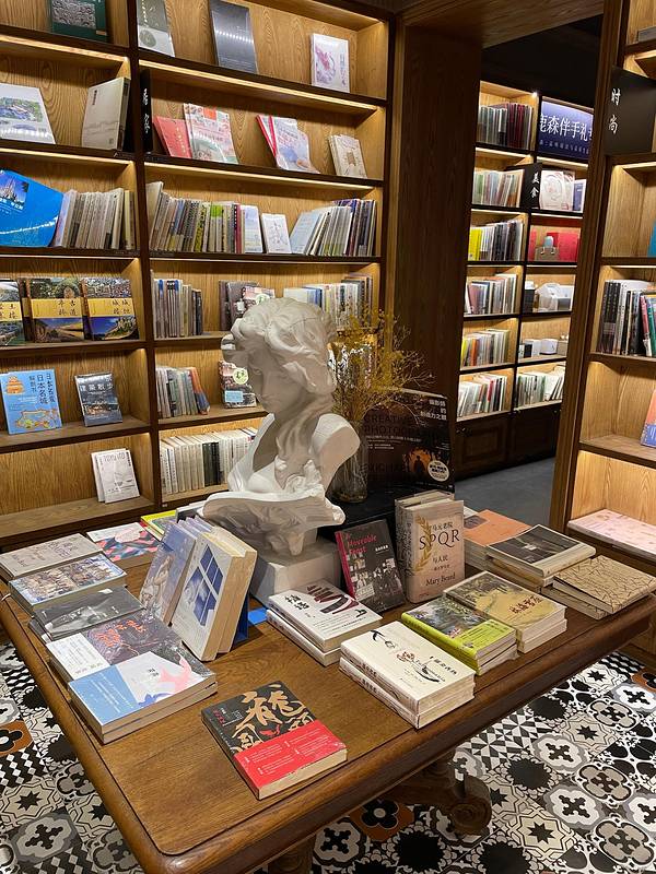 作常幽静的书店环境。 很适合坐到这里, 喝下午 聊天, 看书, 度过一个悠闲的下午。 装修还有 点欧美的风范, 很多雕塑比较特色。 整个书店有 两层, 还是非常太的。
