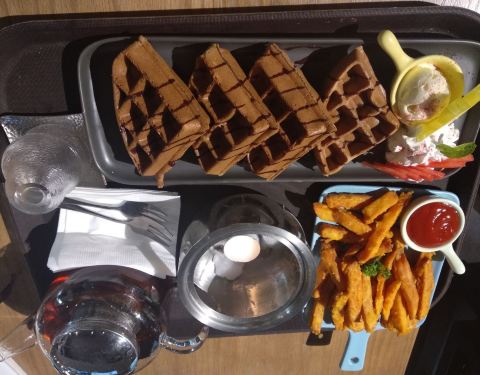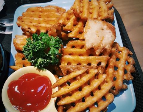 都要好好吃饭好好关心自己,都不要忘记与自己说声辛苦了,好好努力! 好好喝茶慢慢享受松饼和薯角。有点辣
