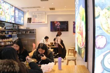 基本上的商户都是共用桌椅。小涮哥之前较流行,一人一锅干净卫生,很适合上班族解决午餐要的冬阴功海鲜锅,里面有虾、鳕鱼、花甲等,配菜是海带丝、白菜等,汤底比较淡但是味道还可以,一边力热一边吃,火大了容...