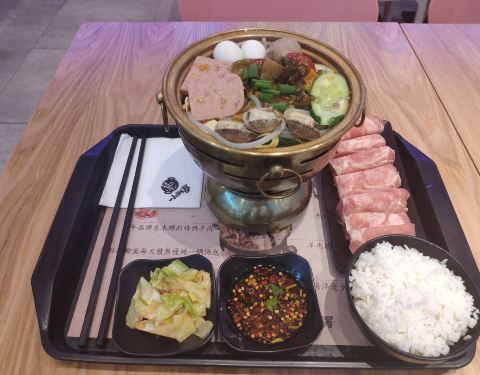小涮哥,重庆首创单人锅的连锁品牌。 小涮哥,一人锅,一个人也能好好吃饭。。 火锅分量十足,价格实惠,可格外去加菜。 冬阴功海鲜锅,32元,重庆麻辣鱿鱼锅,28元,重庆麻辣肥牛锅,32元。 最为推荐重庆麻辣鱿鱼锅,打底的菜满的要溢出来,用的是正宗的重庆火锅底料,牛油香气厚重,麻辣鲜香,是冒菜无法相比的诱人滋味。珍珠米饭,颗粒饱满,特好吃!