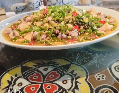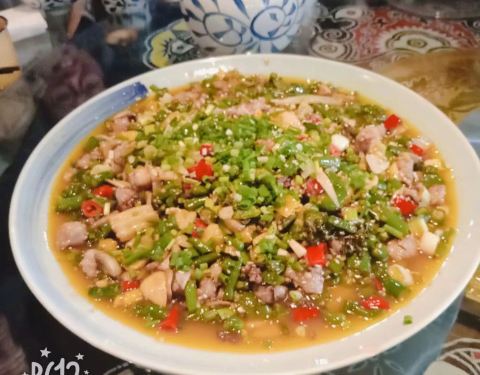 我们是聚餐,选择的这个地方,真的每一道菜都特别好吃,猪蹄啊,兔肉,蛙肉,小炒肉,油白菜………饭也特别好吃,粥也好吃,肉味道辣辣的,很有味,炒鸡喜欢
