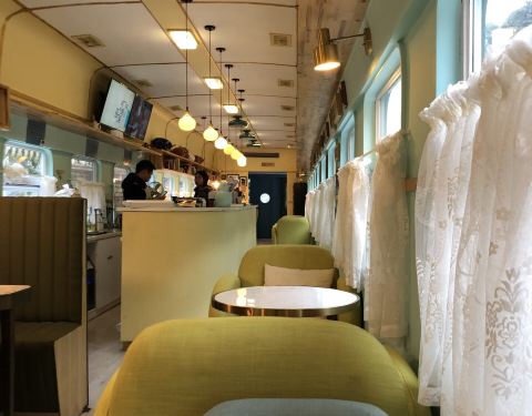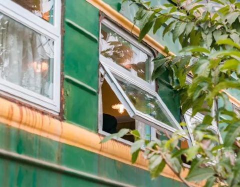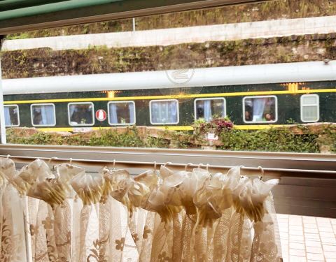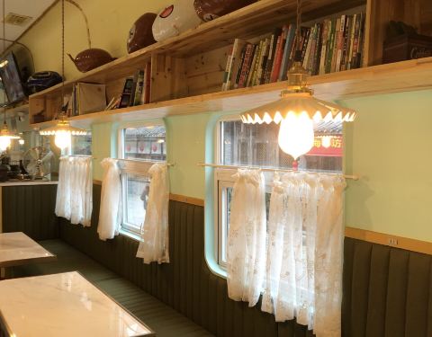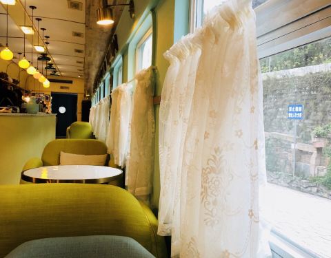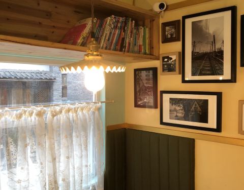在铁路护墙之外,有一节废弃的绿皮车厢停留在此,脑海深处的泛黄记忆被唤醒,搭乘绿皮火车的青涩往事打着高光被照亮,在脑袋里嗡嗡作响,猝不及防铺天盖地而来,让人兴高采烈又恍恍惚惚,而好奇心驱使让你迫不及待走近它一探究竟。 绳索悬挂的吊灯,待窗外列车疾驰而过时,能产生乘坐火车那般隐隐约约的真实摇晃感;随手可拿的书籍,铺满四周的老照片,勾勒着诗与远方的清新文艺。 在这里,浪费一下午呆坐也不为过啊!